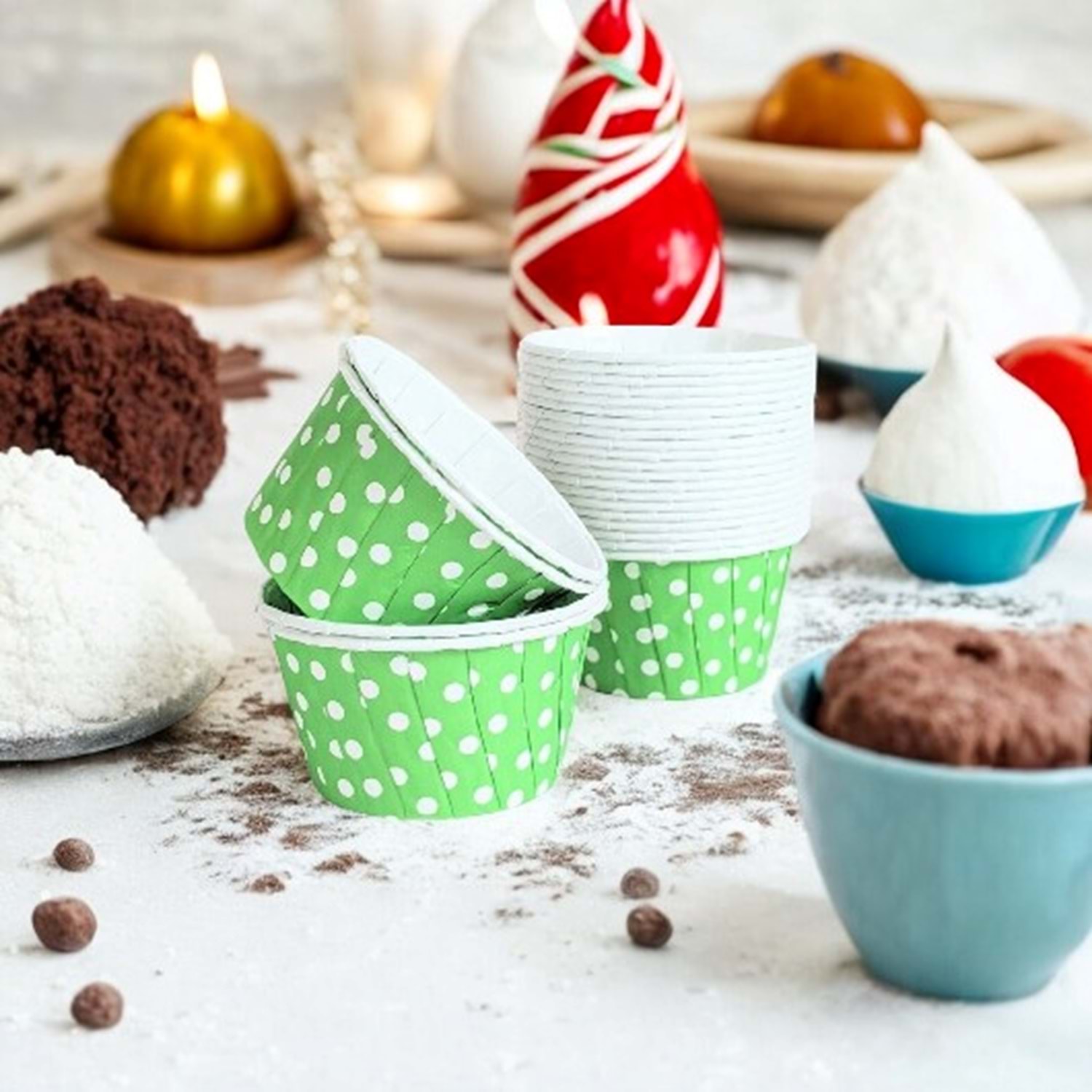 MUFFİN KEK KAPSÜLÜ - 50Lİ - YEŞİL PUANTİYELİ